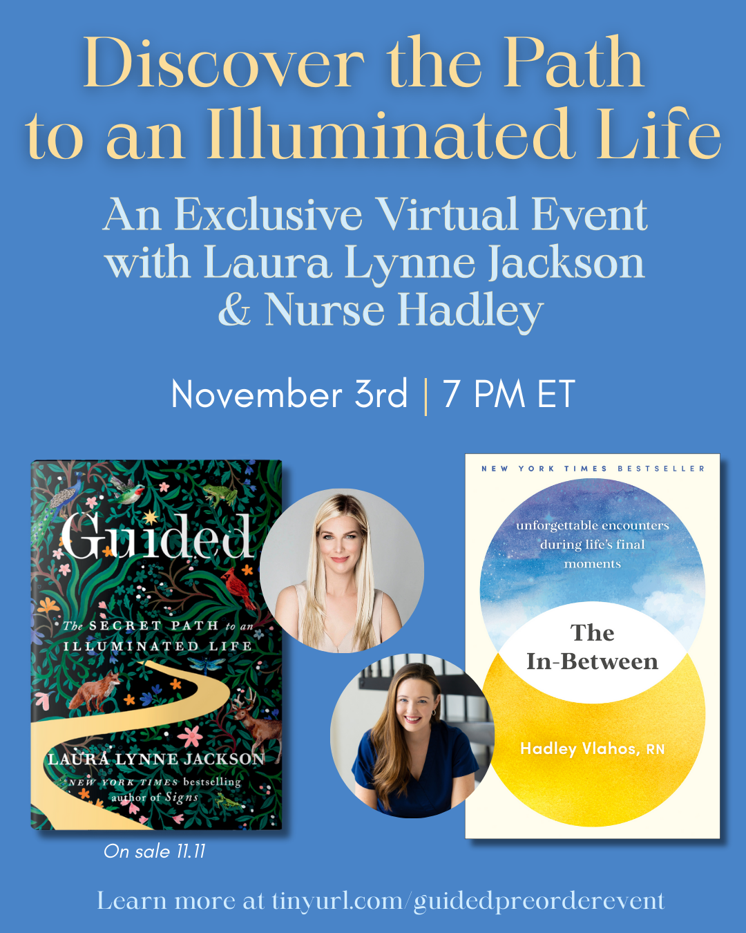 Join us on November 3 at 7 PM ET for an exclusive virtual event with Laura Lynne Jackson. In conversation with Nurse Hadley (The In-Between), they will discuss and take questions about Jackson’s new book, Guided, on sale November 11.